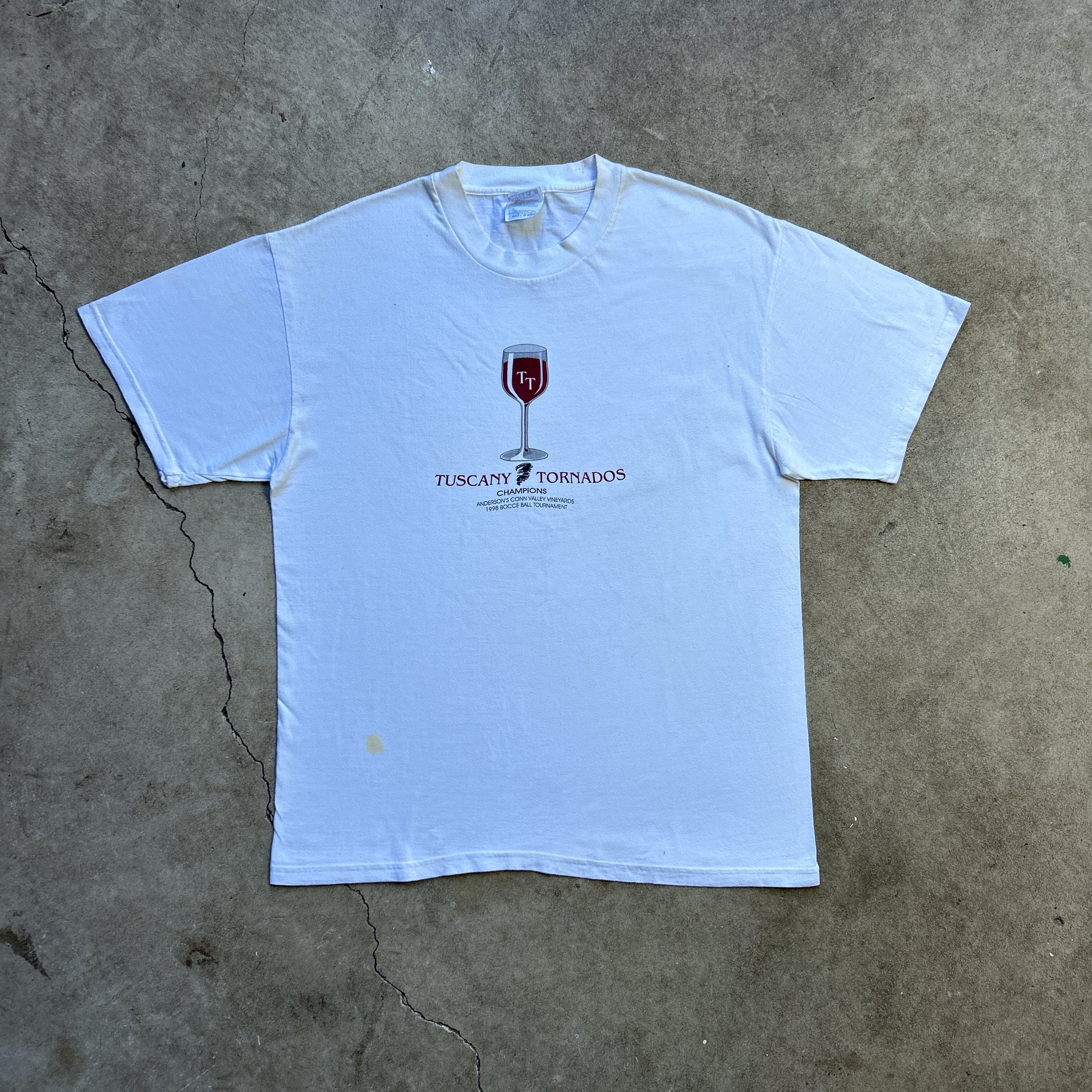 Vintage 90s Italian Tuscany Tornados Champions, Conn Valley USA Winery Alcohol Party Graphic Print Merchandise T-shirt
